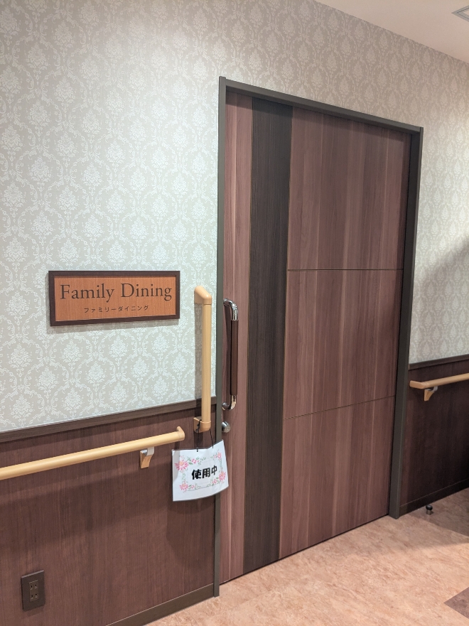 ご家族の面会の際に予約をして使うことが可能です。ご家族で一緒に机を囲んでお食事をするのもいいですね!