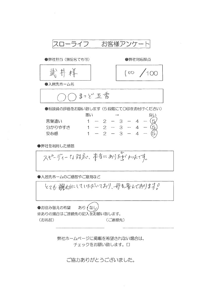 [89歳 女性 要介護4 鎌ヶ谷市在住]