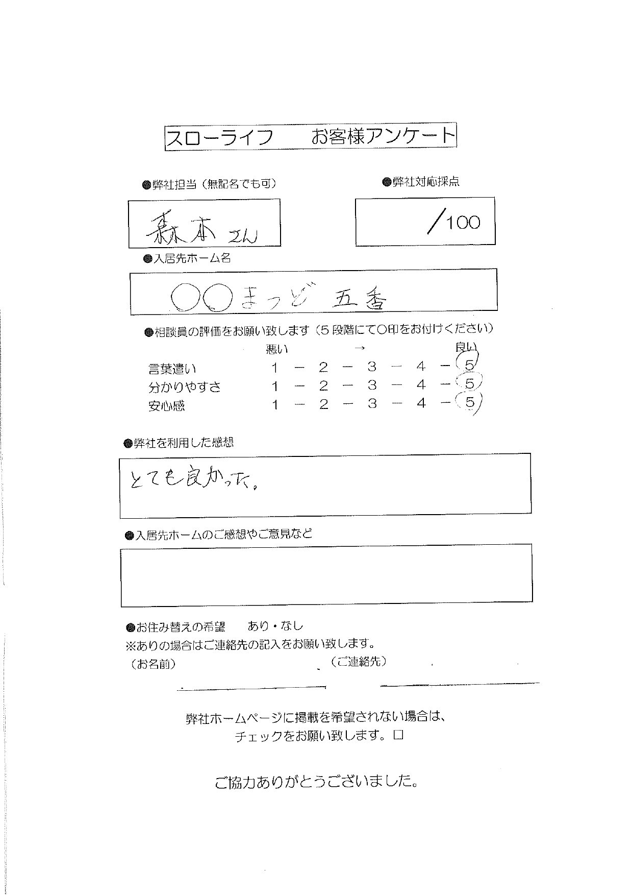 言葉使い5点 わかりやすさ5点 安心感5点