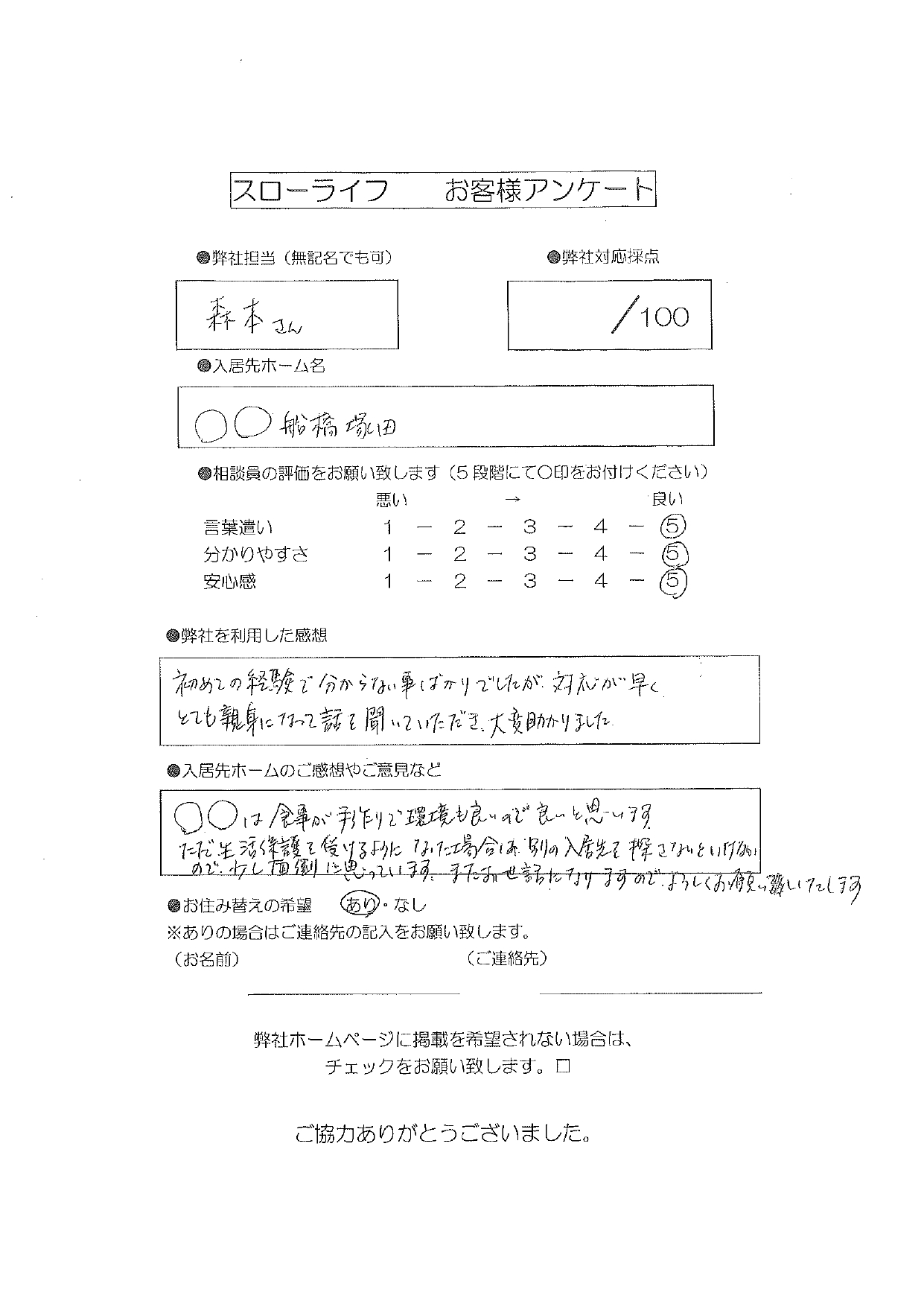 [78歳 女性 要介護(申請中) 船橋市在住]