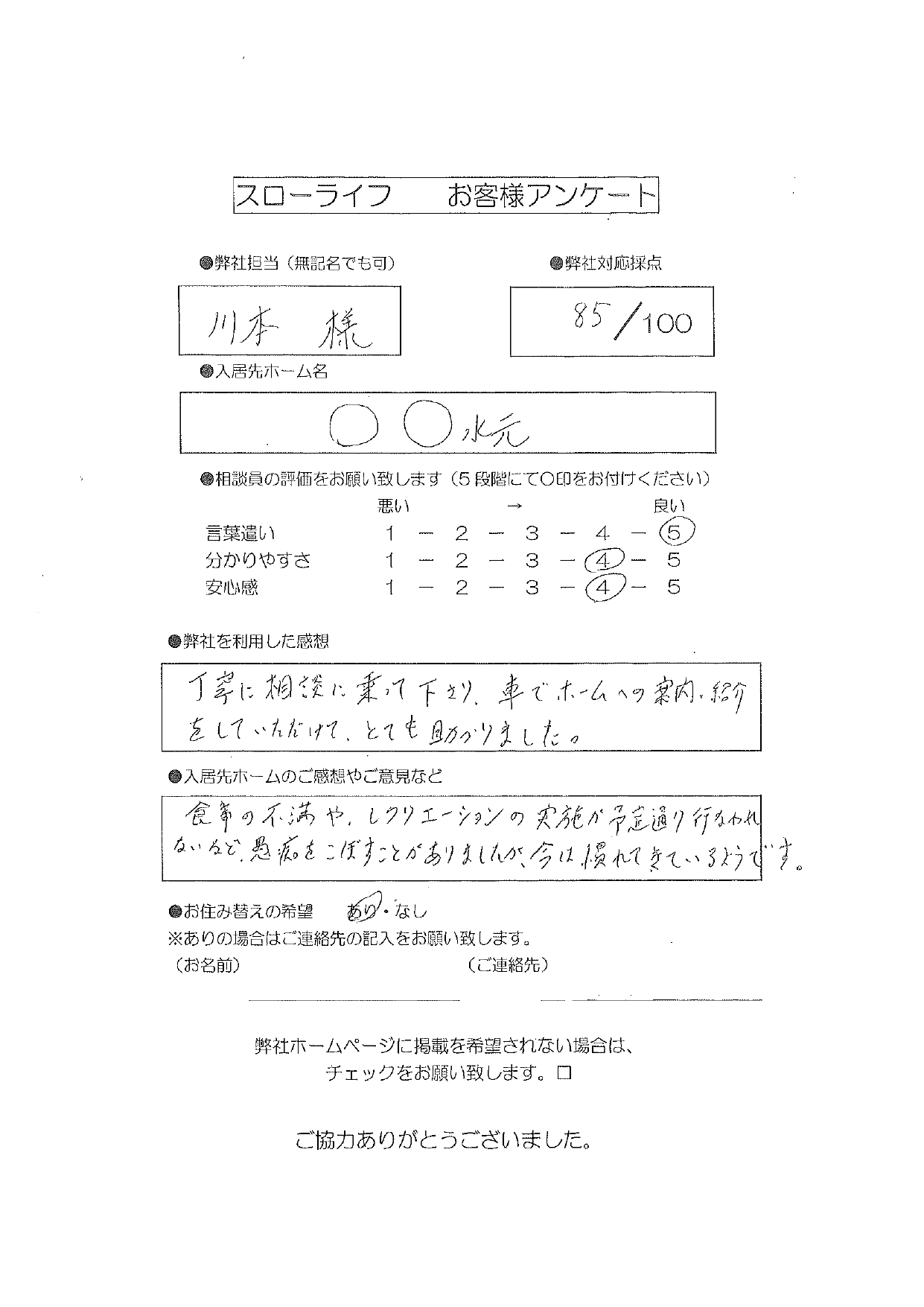 [89歳 女性 要介護3 葛飾区在住]